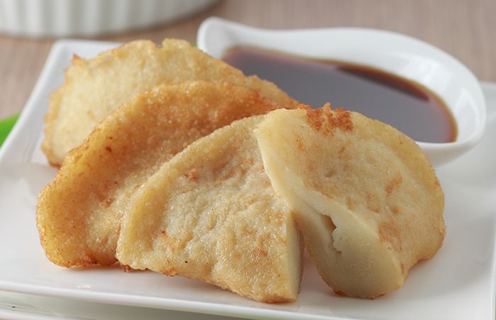 250 gr tepung terigu 1/2 sdm garam halus 350 gr pempek adaan tanpa ikan takaran sendok.